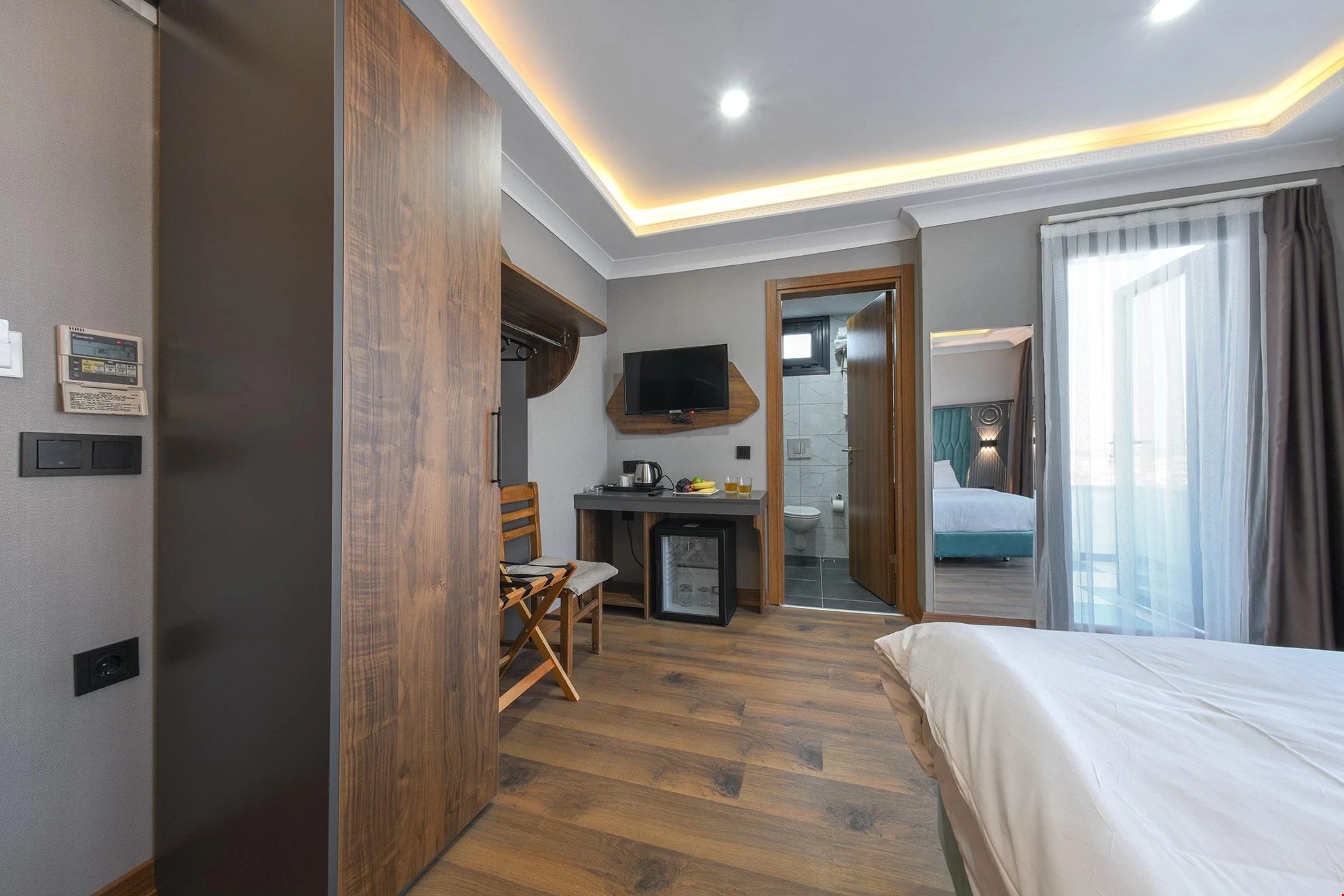 Konforlu ve modern bir konaklama deneyimi için ideal seçenek: 2 kişilik Deluxe Double Balcony odamızda unutulmaz bir tatil sizi bekliyor. Oda, klima, düz ekran TV, kablosuz internet gibi olanaklarla donatılmıştır. Özel banyosunda duş, saç kurutma makinesi ve ücretsiz banyo malzemeleri bulunur. Anti-alerjik özelliklere sahip odamız, extra uzun yatağı, emanet kasası ve ütü olanakları ile konforun zirvesini sunar. Şehir manzaralı balkonunda keyifli anlar geçirebilir, minibar ve buzdolabıyla serin içeceklerinizle rahatlayabilirsiniz. Size özel uyandırma servisi ve düz ekran TV gibi medya özellikleri ile konaklamanızı daha da özel hale getiriyoruz. Bu rahat ve şık odada geçireceğiniz zamanı unutulmaz kılmak için sizi bekliyoruz!;